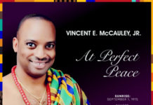 It is with a thankful heart that we announce the ushering into the presence of God Almighty, our son, brother, uncle and friend; Vincent E. McCauley, Jr., (now of Blessed Memory) on Monday, 15th January 2024, after undergoing surgery in South Africa for a brain tumour.